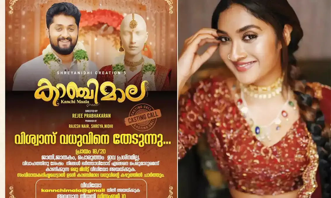 വിശ്വാസ്, വധുവിനെ തേടുന്നു എന്ന പരസ്യം സമൂഹമാധ്യമങ്ങളില് കഴിഞ്ഞ ദിവസങ്ങളില് പ്രത്യക്ഷപ്പെട്ടിരുന്നു. റെജി ഫോട്ടോ പാര്ക്ക് സംവിധാനം ചെയ്യുന്ന കാഞ്ചി മാല എന്ന ചിത്രത്തിന്റെതായിരുന്നു ഈ അറിയിപ്പ്. അന്വോഷണത്തിന് പര്യവസ്സാനമായി വധുവിനെ ലഭിച്ചിരിക്കുന്നു. പ്രശസ്ത നടി ഉര്വ്വശിയുടെ മകള് തേജാ ലഷ്മി (കുഞ്ഞാറ്റയാണു വധു) ധ്യാന് ശ്രീനിവാസനാണ് ഈ ചിത്രത്തിലെ കേന്ദ്ര കഥാപാത്രമായ വിശ്വാസിനെ അവതരിപ്പിക്കുന്നത്. ശ്രേയാനിധി ക്രിയേഷന്സിന്റെ ബാനറില് രാജേഷ് നായര്, ശ്രേയാനിധി എന്നിവര് നിര്മ്മിക്കുന്ന ഈ ചിത്രം നമ്മുടെ സമൂഹത്തില് നിന്നും നഷ്ടമായിക്കൊണ്ടിരിക്കുന്ന പല ജീവിത മൂല്യങ്ങളും തിരിച്ചു പിടിക്കാനുള്ള ഉദ്യമത്തിന്റെ സന്ദേശം ഉള്ക്കൊള്ളുന്ന ചിത്രമാണ്. ക്ളീന് എന്റര്ടൈനറായി ത്തന്നെയാണ് ഈ ചിത്രത്തെ അവതരിപ്പിക്കുന്നത്.
