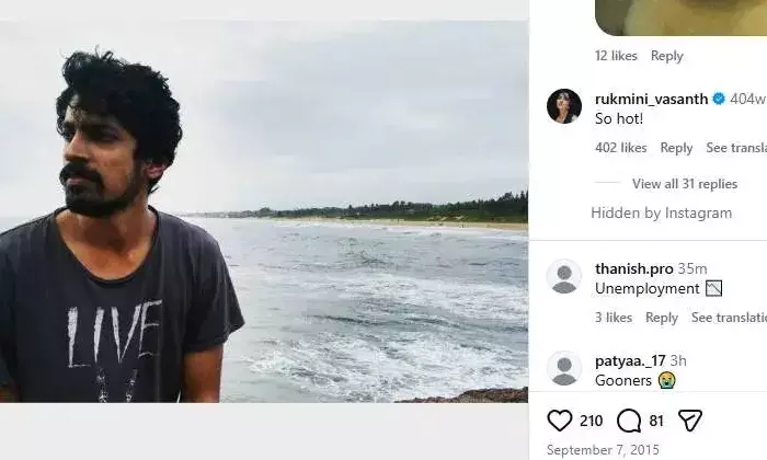 കാന്താര എന്ന ചിത്രത്തോട് കൂടി കേരളത്തിൽ ഒരുപാട് ആരാധകരുള്ള തെന്നിന്ത്യൻ നടിയാണ് രുക്മിണി വസന്ത്. ഇൻസ്റ്റഗ്രാമിൽ 40 ലക്ഷത്തിനടുത്ത് ഫോളോവേഴ്സുള്ള രുക്മിണിയുടെ ഒരു കമന്റാണ് ഇപ്പോൾ സോഷ്യൽ മീഡിയയിൽ ചർച്ചാവിഷയം.നടൻ അർജുൻ രാധാകൃഷ്ണന്റെ ഇൻസ്റ്റഗ്രാം പോസ്റ്റിലായിരുന്നു രുക്മിണിയുടെ കമന്റ്. അതും 2015-ൽ അർജുൻ പങ്കുവെച്ച ഒരു ചിത്രത്തിന് താഴെ 2018-ലാണ് രുക്മിണി കമന്റ് ചെയ്തത്. 'സോ ഹോട്ട്' എന്നാണ് അവർ കുറിച്ചത്. ഇത് ഇപ്പോൾ ആരാധകർ കണ്ടെത്തിയിരിക്കുകയാണ്. അർജുന്റെ 2015-ലെ ഫോട്ടോകൾക്ക് താഴെ രുക്മിണിയുടെ കമന്റ് അന്വേഷിച്ചെത്തുന്നവരും കുറവല്ല.യഷിനെ നായകനാക്കി ഗീതു മോഹൻദാസ് സംവിധാനം ചെയ്ത ടോക്സിക്കിൽ ഒരു പ്രധാന വേഷത്തിൽ രുക്മിണി എത്തുന്നുണ്ട്. പട, ഡിയർ ഫ്രണ്ട്, കേരള ക്രൈം ഫയൽസ്, കണ്ണൂർ സ്ക്വാഡ്, ഉള്ളൊഴുക്ക് എന്നീ ചിത്രങ്ങളിലൂടെ ആരാധകരുടെ ഹൃദയത്തിൽ ഇടം നേടിയ നടനാണ് അർജുൻ.
