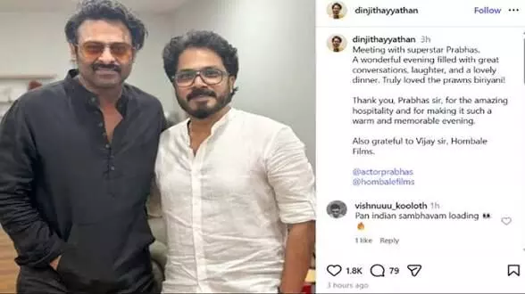 സംവിധായകൻ ദിൻജിത്ത് അയ്യത്താനും സൂപ്പർസ്റ്റാർ പ്രഭാസും സഹകരിക്കുന്ന ഒരു മൂവി പ്രതീക്ഷിക്കുകയാണ് ആരാധകർ. 'കിഷ്കിന്ധാ കാണ്ഡം', 'എക്കോ' എന്നീ ചിത്രങ്ങളിലൂടെ മലയാള സിനിമയുടെ ഘടനയെ തന്നെ മാറ്റിമറിച്ച സംവിധായകനാണ് ദിൻജിത്ത് അയ്യത്താൻ. അദ്ദേഹം പ്രഭാസുമായി കഴിഞ്ഞദിവസം നടത്തിയ കൂടിക്കാഴ്ച സിനിമാ പ്രേമികൾക്കിടയിൽ വലിയ പ്രതീക്ഷയാണ് നൽകുന്നത്.