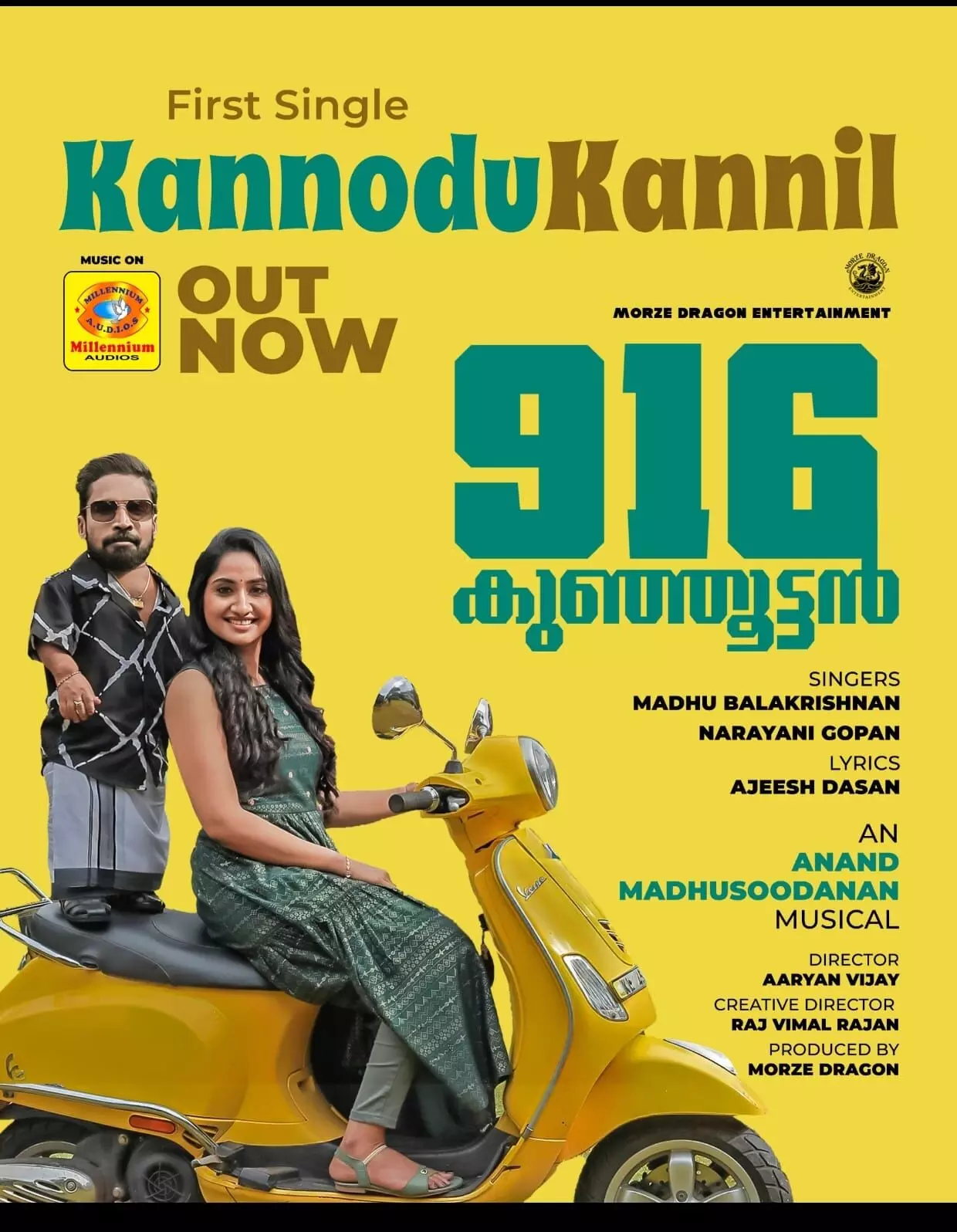ഗിന്നസ് പക്രു നായകനാകുന്ന "916 കുഞ്ഞൂട്ടൻ " എന്ന ചിത്രത്തിലെ ആദ്യ വീഡിയോ ഗാനം റിലീസായി. അജീഷ് ദാസൻ എഴുതിയ വരികൾക്ക് ആനന്ദ് മധുസൂദനൻ സംഗീതം പകർന്ന് മധു ബാലകൃഷ്ണൻ നാരായണി ഗോപൻ എന്നിവർ ആലപിച്ച "കണ്ണോടു കണ്ണിൽ..." എന്നാരംഭിക്കുന്ന ഗാനമാണ് റിലീസായത്. മോർസെ ഡ്രാഗൺ എന്റർടൈൻമെന്റിന്റെ ബാനറിൽ നിർമ്മിക്കുന്ന "916 കുഞ്ഞൂട്ടൻ" എന്ന ചിത്രത്തിൽ ടിനി ടോം,രാകേഷ് സുബ്രമണ്യം എന്നിവർ പ്രധാന കഥാപാത്രങ്ങളെ അവതരിപ്പിക്കുന്നു. ആര്യൻ വിജയ് ആദ്യമായി സംവിധാനം ചെയ്യുന്ന ചിത്രമാണ് '916 കുഞ്ഞൂട്ടൻ".