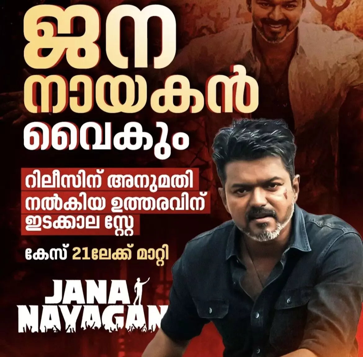 വിജയ് ചിത്രം ജനനായകന് വീണ്ടും തിരിച്ചടി. റിലീസ് അനുമതി നൽകിയ കോടതി ഉത്തരവിന് ഇടക്കാല സ്റ്റേ.