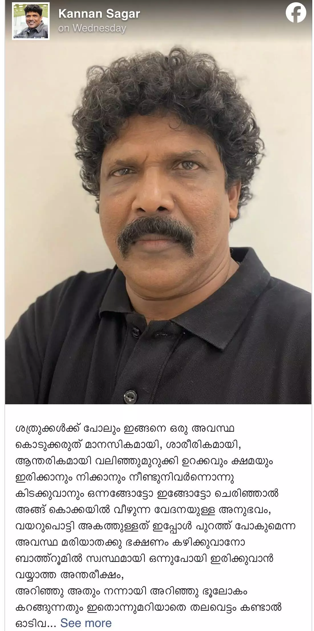 വയറു പൊട്ടിപ്പോകുന്നു, ബാത്ത്റൂമിൽ ഇരിക്കാൻ വയ്യ നൊമ്പര കുറിപ്പുമായി കണ്ണൻ പടസാഗർ