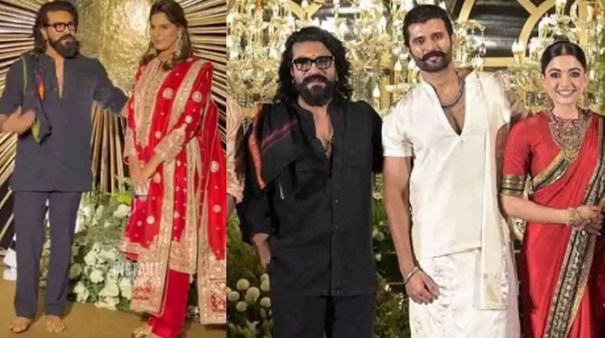 ഹൈദരാബാദിൽ നടന്ന വിജയ് ദേവരകൊണ്ടയുടെയും രശ്മിക മന്ദാനയുടെയും വിവാഹ സൽക്കാരം ദക്ഷിണേന്ത്യൻ സിനിമാ ലോകത്തെ താരനിബിഡമായ ഒരു ഒത്തുചേരലായി മാറി. പ്രമുഖ താരങ്ങൾ ഉൾപ്പെടെ നിരവധി പേർ നവദമ്പതികൾക്ക് ആശംസകളുമായി ചടങ്ങിൽ പങ്കെടുത്തു. ചടങ്ങിലെ സവിശേഷമായ സാന്നിധ്യം നടൻ രാം ചരൺ തേജയുടേതായിരുന്നു. കറുപ്പ് വസ്ത്രമണിഞ്ഞ്, താടിയും മുടിയും നീട്ടി വളർത്തി ചെരിപ്പില്ലാതെയാണ് അദ്ദേഹം വിവാഹ സൽക്കാരത്തിനെത്തിയത്. ഭാര്യ ഉപാസന കാമിനേനിയും അദ്ദേഹത്തോടൊപ്പം ഉണ്ടായിരുന്നു. ശബരിമല തീർഥാടനത്തിന് മുന്നോടിയായുള്ള വ്രതാനുഷ്ഠാനത്തിന്റെ ഭാഗമായാണ് അദ്ദേഹം അതീവ ലളിതമായ വേഷത്തിൽ ചടങ്ങിൽ എത്തിയത്.