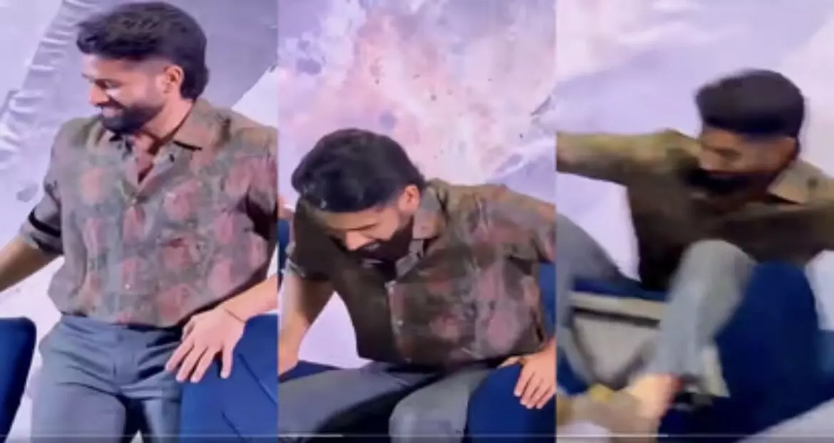 തെലുങ്ക് താരം നാഗ ചൈതന്യയുടെ പുതിയ ചിത്രം 'വൃഷകര്മ്മ'യുടെ ഫസ്റ്റ് ഗ്ലിംപ്സ് റിലീസ് ചടങ്ങിനിടെ വേദിയിൽ നിന്ന് വീണു
