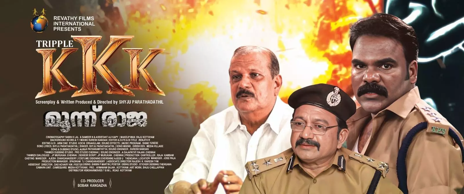 കേരളത്തിലെ കലുഷിതമായ രാഷ്ട്രീയാന്തരീക്ഷത്തിൽ, പി.സി.ജോർജ് കേരളത്തിന്റെ ആഭ്യന്തര മന്ത്രിയായാൽ എന്ത് സംഭവിക്കും? ഈ വിഷയം ചർച്ച ചെയ്യുകയാണ് കെ.കെ.കെ. മൂന്ന് രാജ എന്ന ചിത്രം. രേവതി ഫിലിം സ് ഇന്റർനാഷണലിനു വേണ്ടി ഷൈജു പാറത്തടത്തിൽ, നിർമ്മാണം, കഥ, തിരക്കഥ, സംഗീതം, സംവിധാനം എന്നിവ നിർവ്വഹിക്കുന്ന ഈ ചിത്രത്തിന്റെ ചിത്രീകരണം, എരുമേലി, കമ്പം, തേനി, കൊടൈക്കനാൽ,ചങ്ങനാശ്ശേരി എന്നിവിടങ്ങളിലായി പൂർത്തിയായി. ഫെബ്രുവരി അവസാനം തീയേറ്ററിലെത്തും.